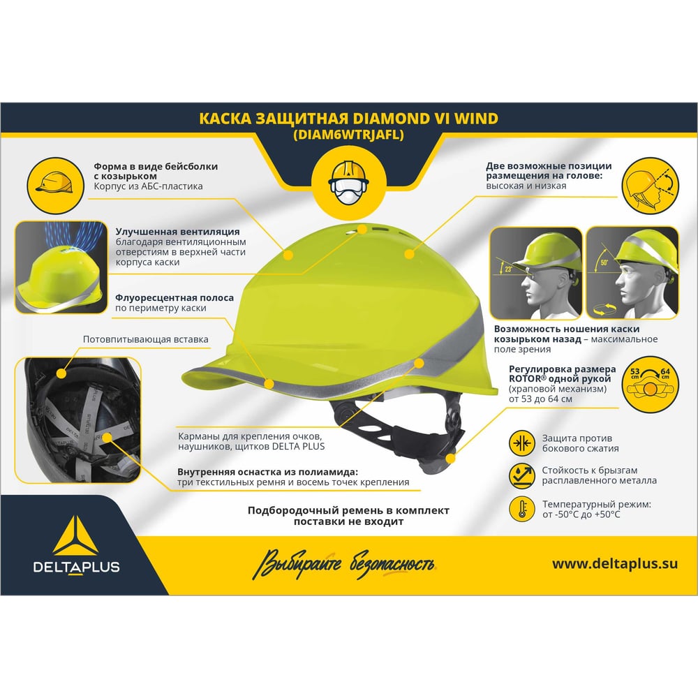 Защитная каска Delta Plus DIAMOND VI WIND DIAM6WTRJAFL
