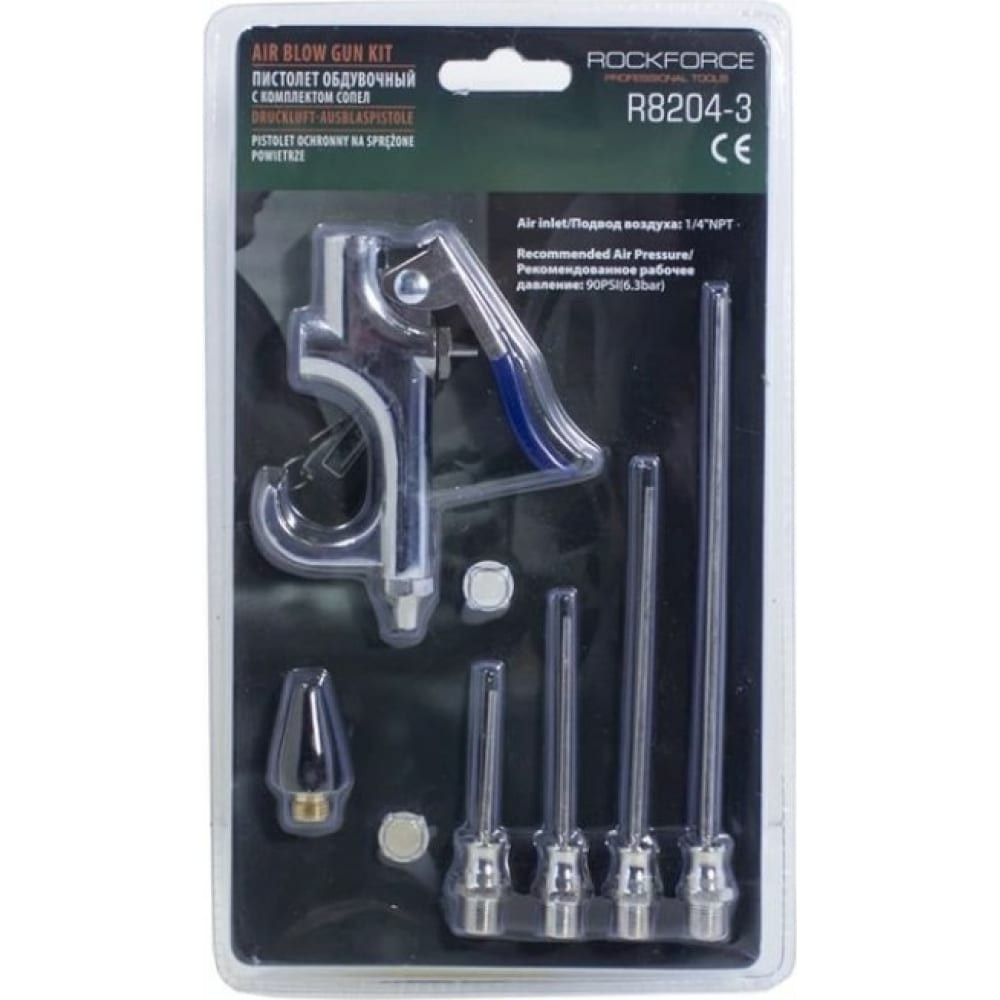ROCKFORCE Пистолет обдувочный с комплектом сопел 6пр., в блистере RF-R8204-3