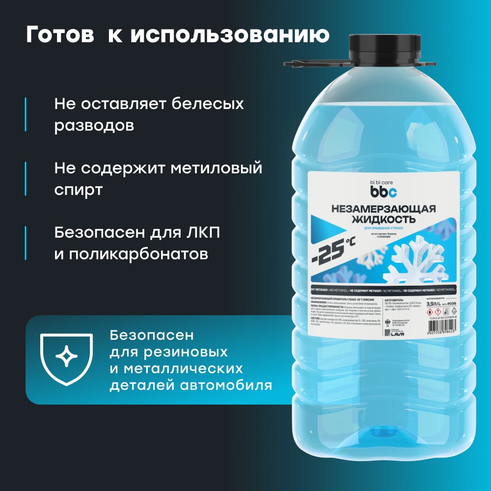 Жидкость стеклоомывающая зимняя BiBiCare -25, 3,9 л 4035