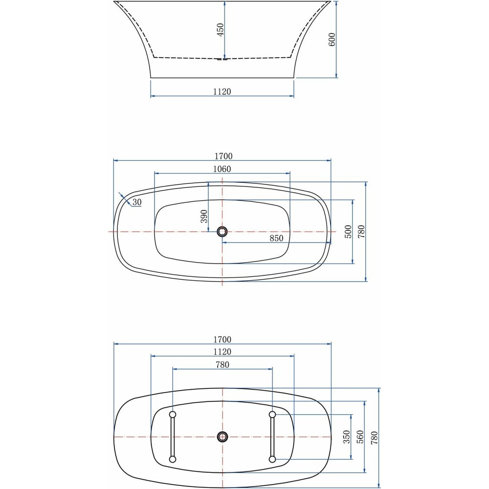Ванна Aquanet 1700x780 мм, акриловая, слив-перелив, белый/черный матовый Black matte 00293083