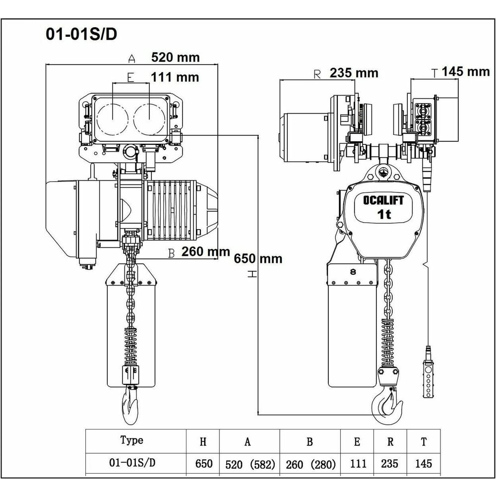 Цепная передвижная электрическая таль OCALIFT 01-01s г/п 1Т, высота 18м, 380в OCA0101ST18m