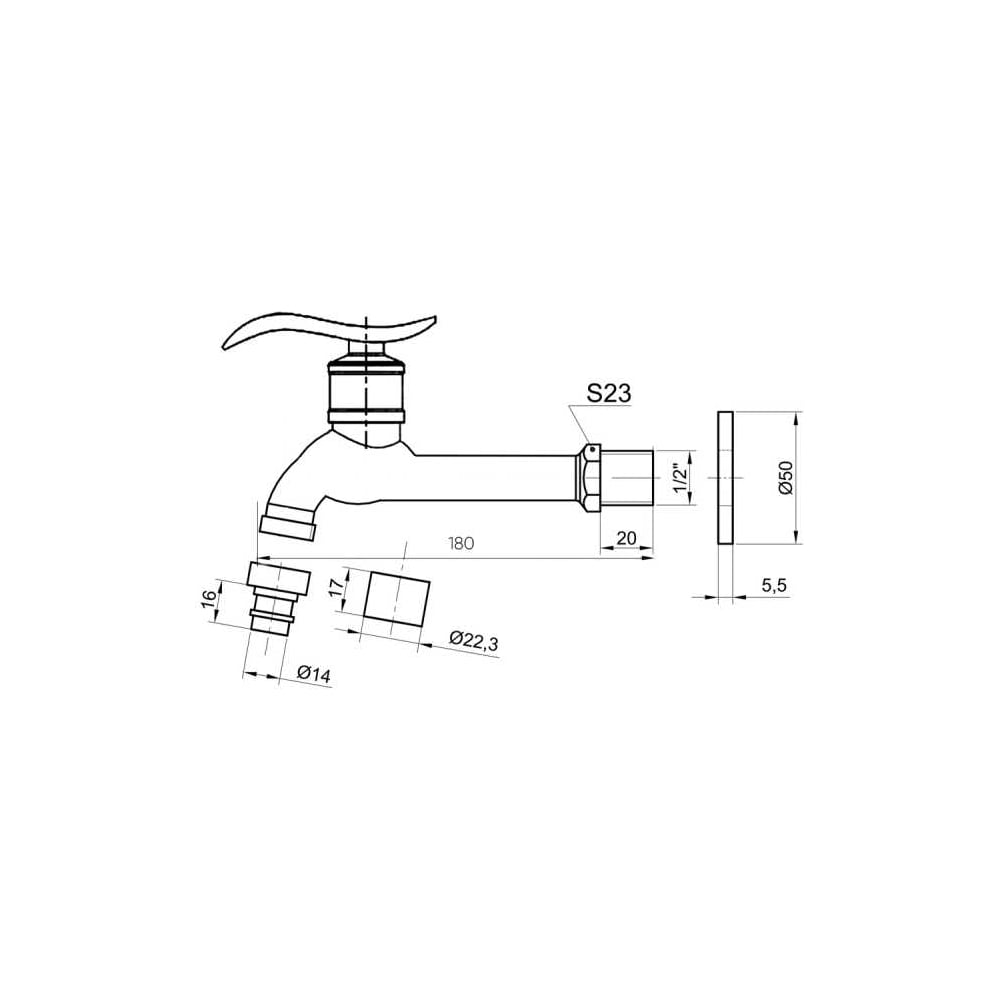 Сливной кран BRONZE DE LUXE длинный, насадка-рассекатель 21598/1