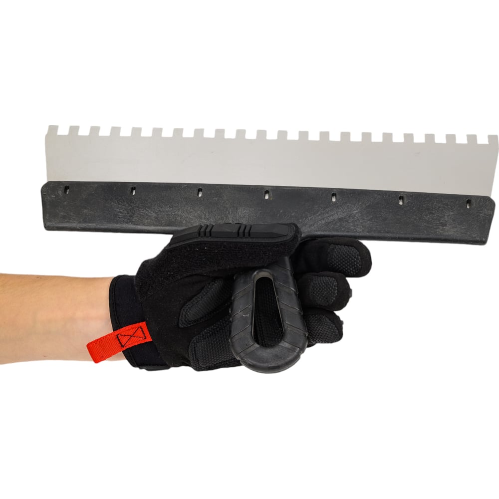 Нержавеющий зубчатый шпатель с пластмассовой ручкой, 350мм, зуб 8х8мм STAYER 1009-35-08