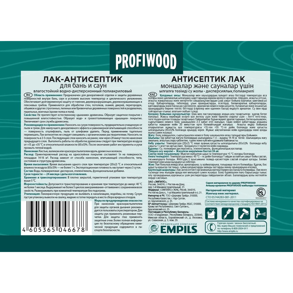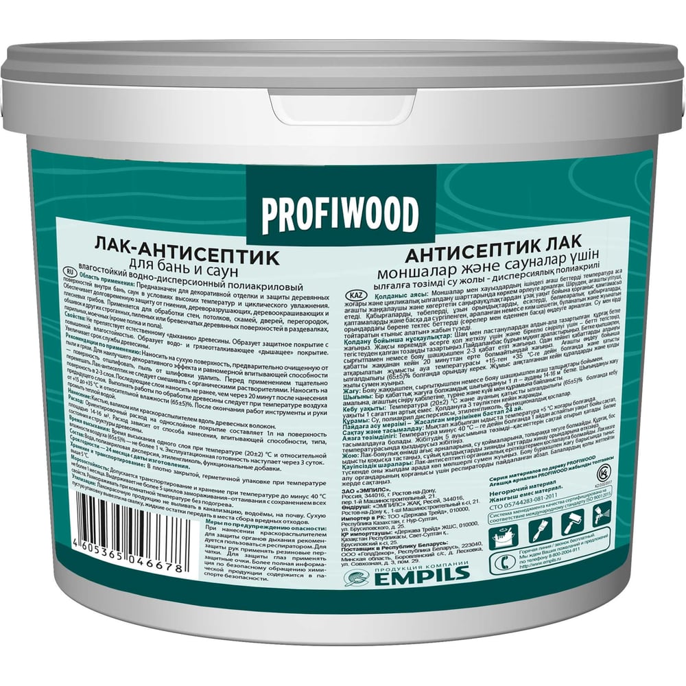 Влагостойкий водно-дисперсионный полиакриловый лак-антисептик для бань и саун Profiwood 6494