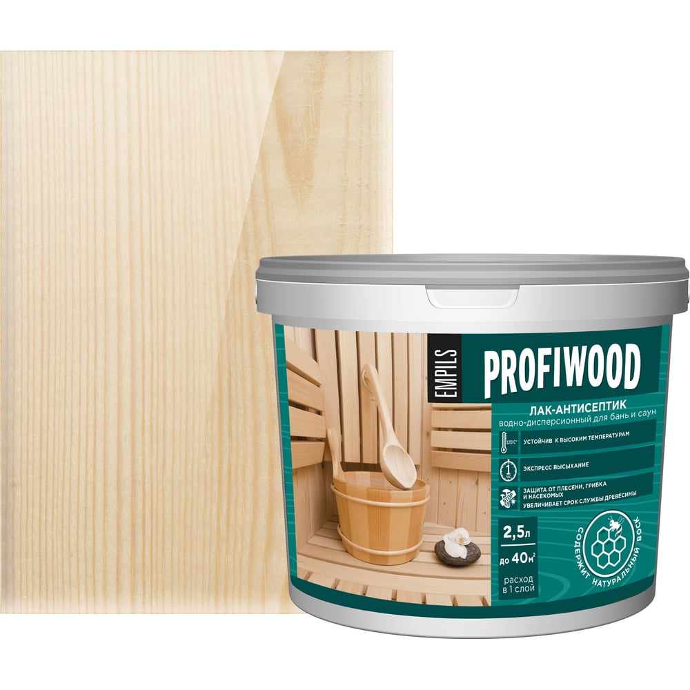 Водно-дисперсионный лак для бань и саун PROFIWOOD (антисептик; влагостойкий; полиакриловый; 2.5 кг) 6494
