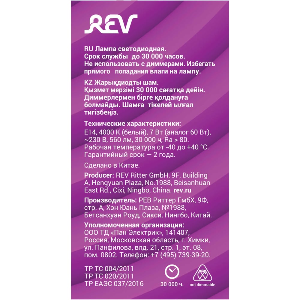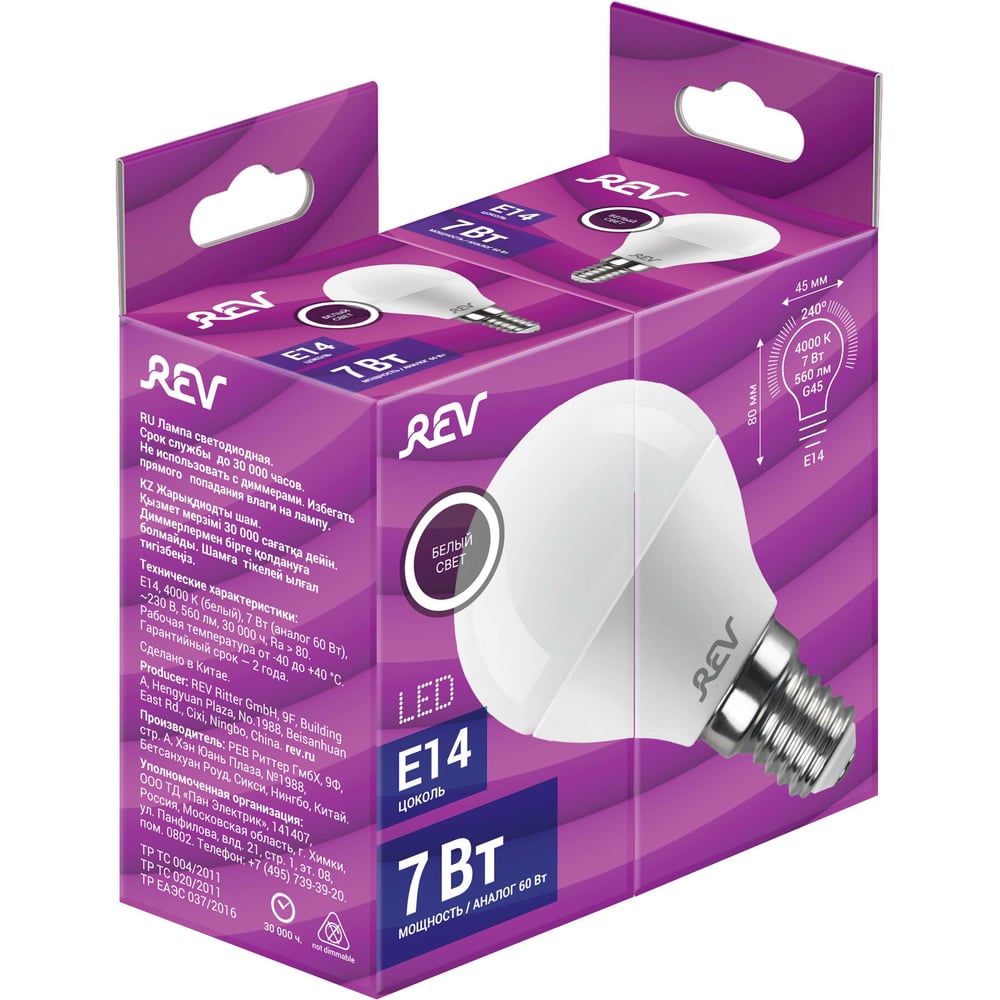 Светодиодная лампа REV LED G45 Е14 7Вт, 560Лм, 4000K 32341 9