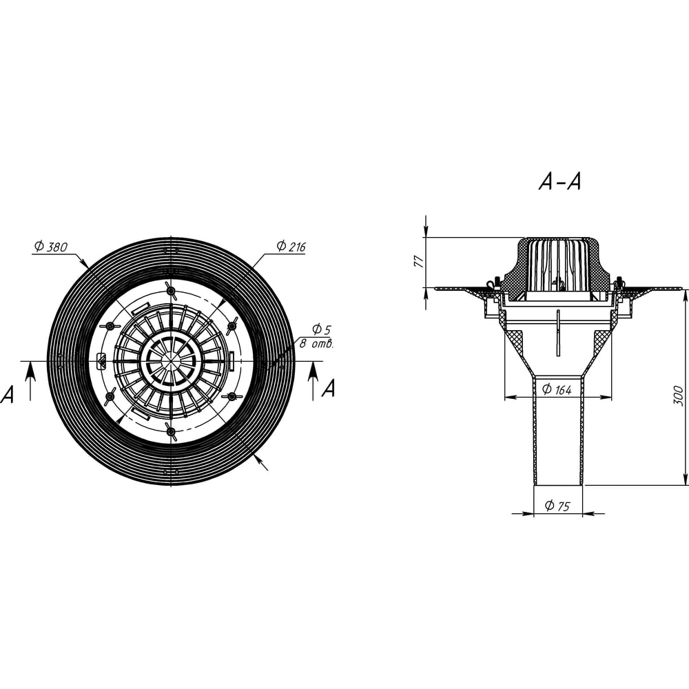 | Диаметр выпуска (отверстия для слива) | 75 мм |