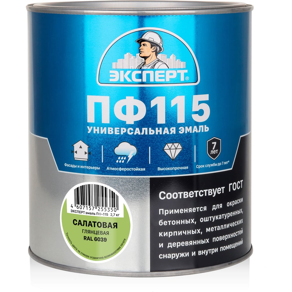 Эмаль ЭКСПЕРТ ПФ-115 глянцевая, салатовая, RAL 6039 2.7 кг 34103