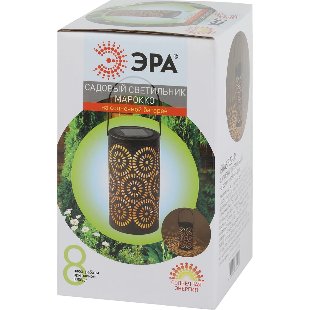 Садовый светильник ЭРА ERASF22-34 Марокко, на солнечной батарее, 19 см, Б0053386