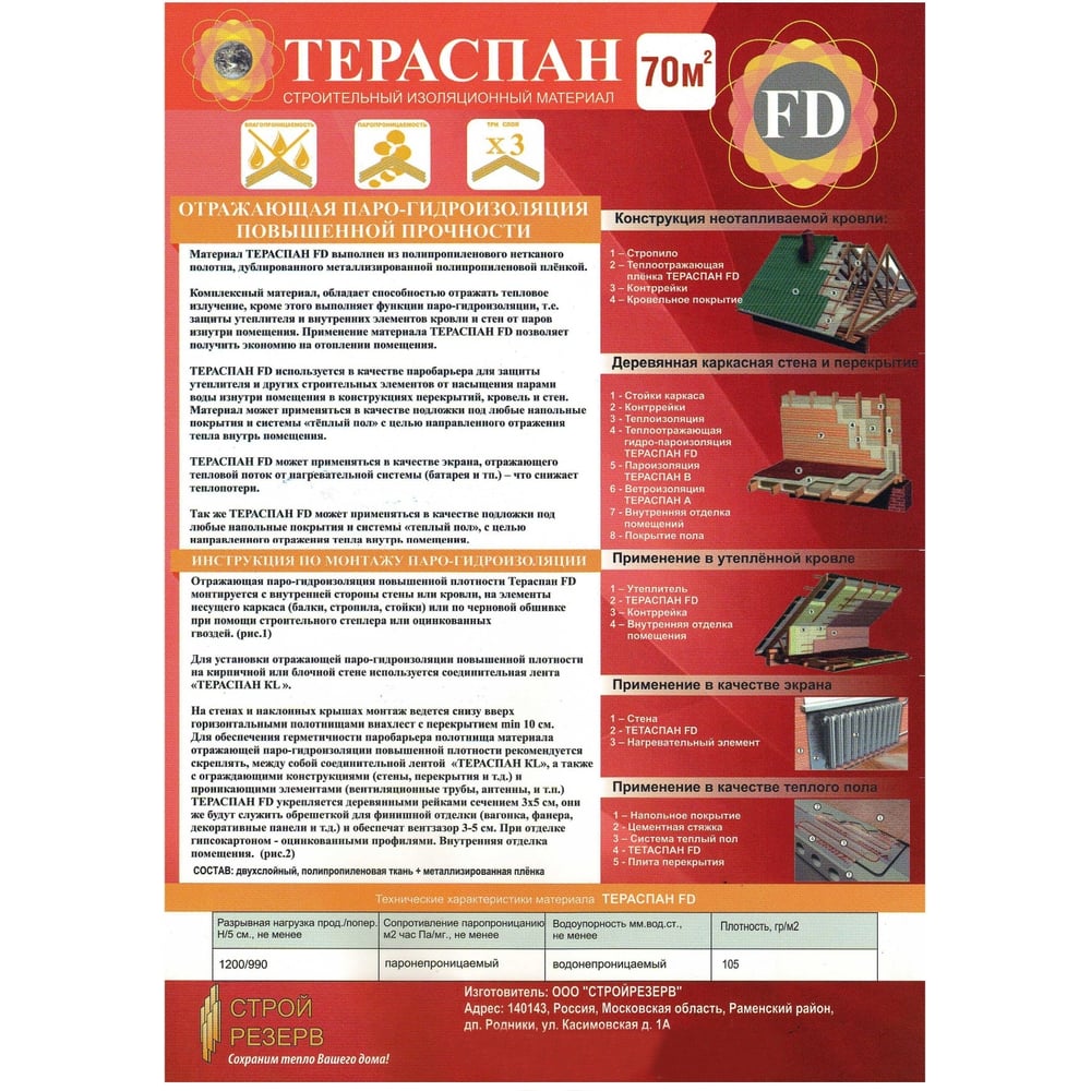 Отражающий паро-гидроизоляционный материал ТЕРАСПАН FD повышенной прочности, 70 кв. м на основе тканого 4660077150723