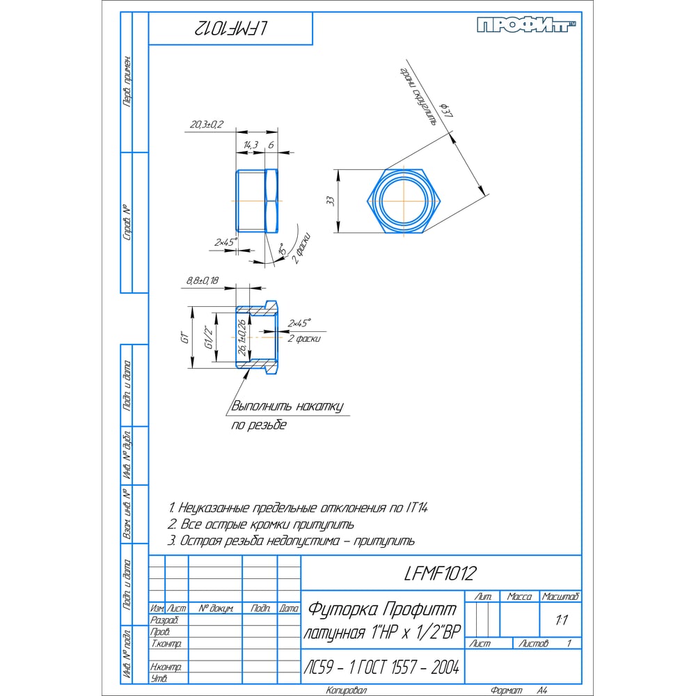 Футорка латунная Профитт НР1" - ВР1/2" - 10 шт. 9274931