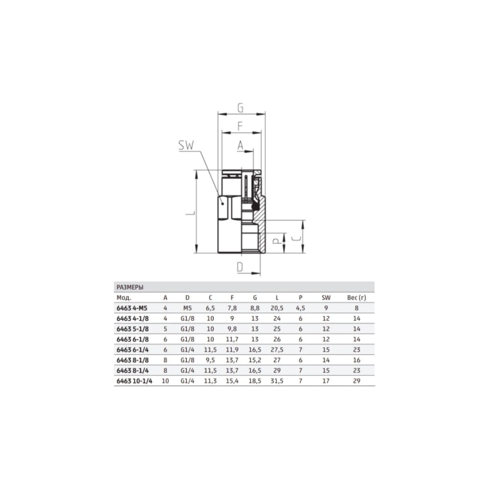 Прямой фитинг Camozzi 6463 6-1/8