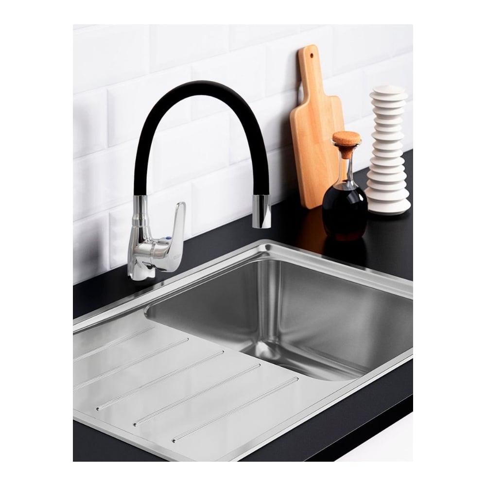Покрытие глянцевое Цвет черный/хром Тип установки настольный/на раковину Стиль современный Материал корпуса цинк Поворотный излив да Назначение для кухни Тип крепления на гайку Гибкий излив да Высота смесителя 310 мм Лейка нет Термостат нет Встраиваемый нет Подводка в комплекте нет Аэратор да Переключатель на фильтр нет Тип смесителя однорычажный Форма излива воды традиционная Запорный клапан керамический картридж Форма смесителя округлая Выдвижной излив нет Излив есть Складной нет С щеткой нет Двойной излив нет Диаметр картриджа 40 мм Размер крепления G1/2 Направление струи под углом ГОСТ/DIN нет Расположение рычага сбоку Расположение термостата без термостата