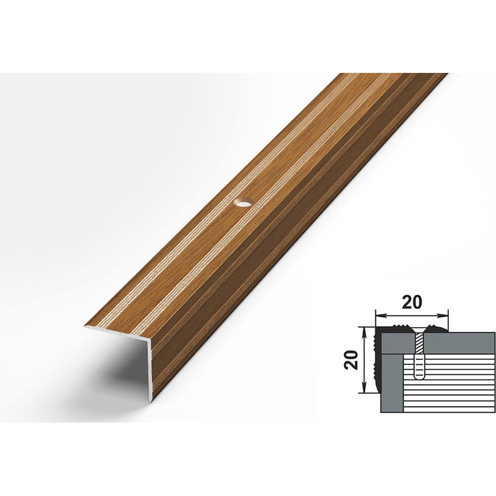 Порог угловой алюминиевый декоративный (20х20 мм, 1,8 м, Орех) ЛУКА 00000002406