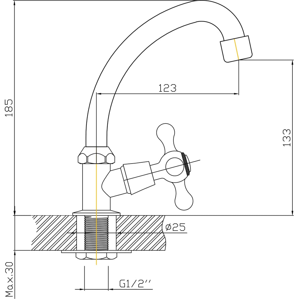 Моно-смеситель для кухни ARCO DA VELLA крест, с гайкой А47(1)07 06450