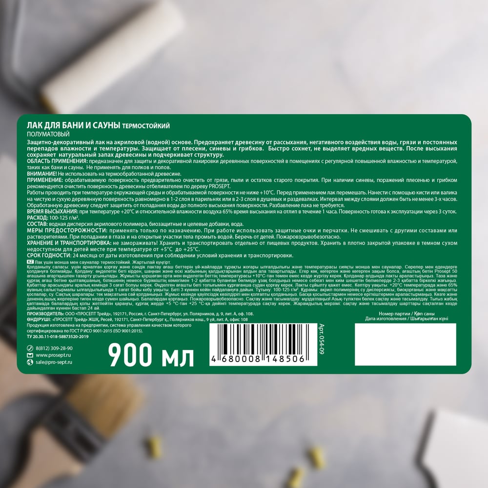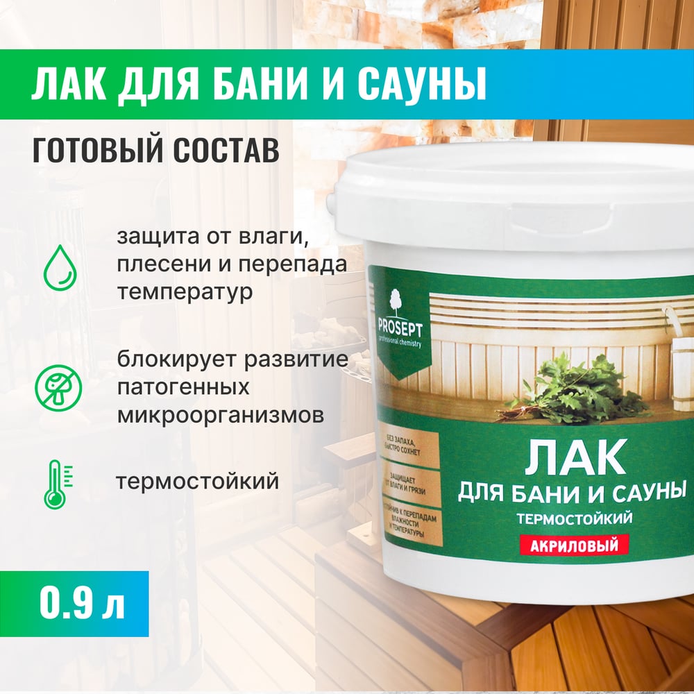 Лак для бани и сауны PROSEPT 0,9 л 054-09