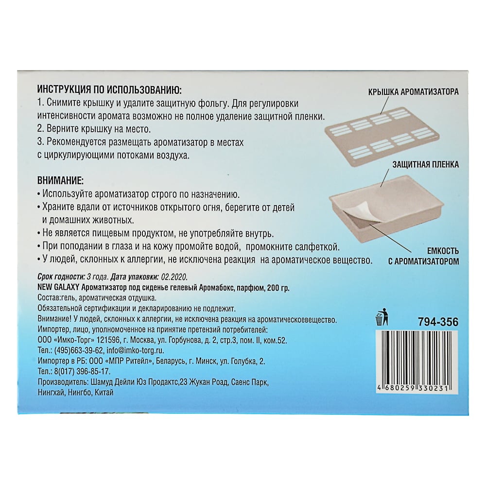 Ароматизатор под сиденье NEW GALAXY Аромабокс гелевый, океанская свежесть, 200 г, Дизайн GC 794-356