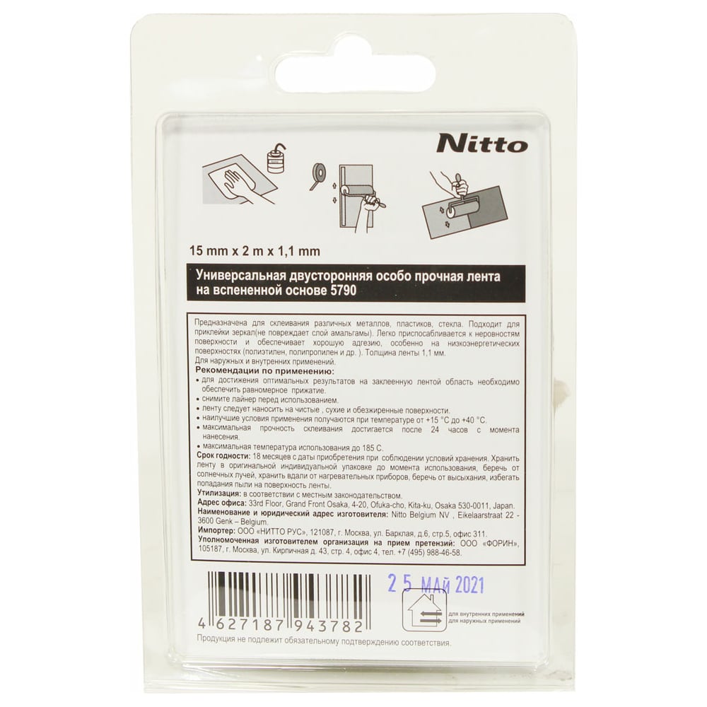 Универсальная двусторонняя особо прочная лента на вспененной основе Nitto 5790, 15 мм х 2 м 4627187943782