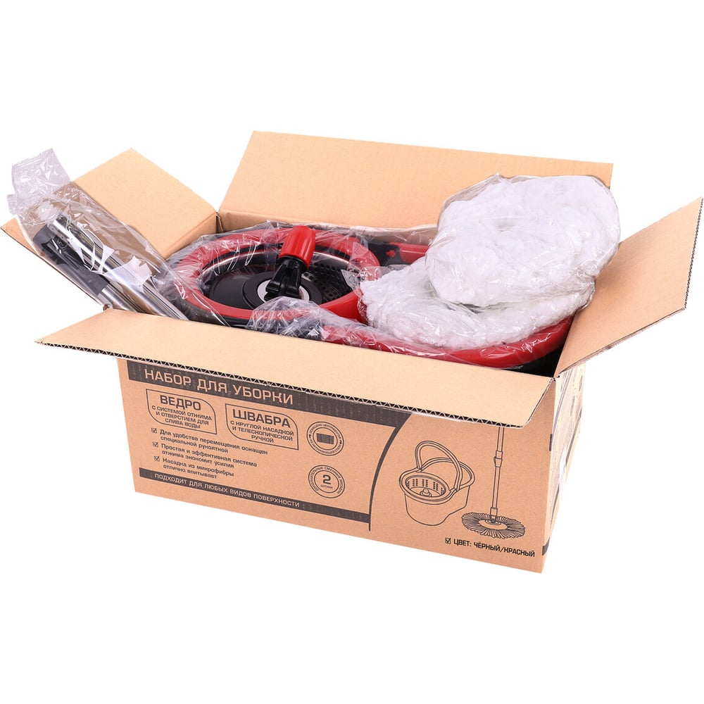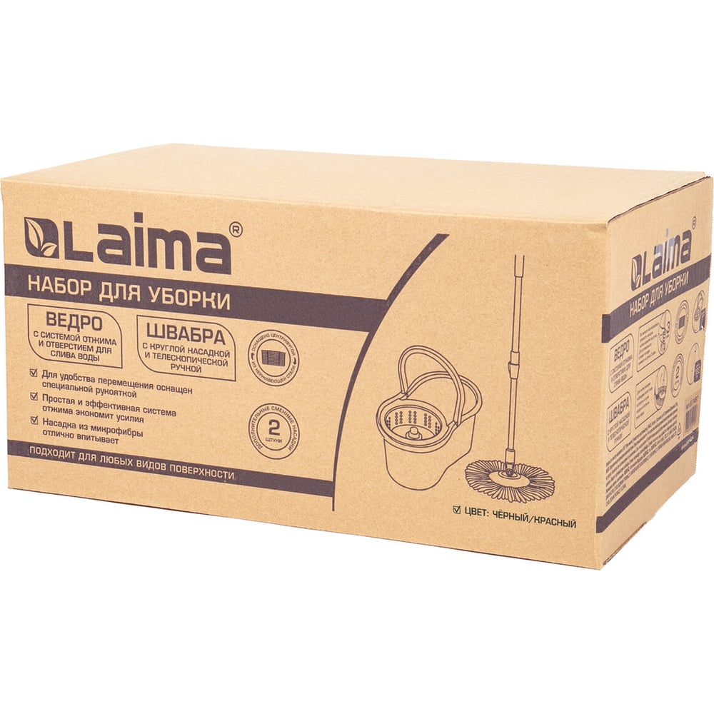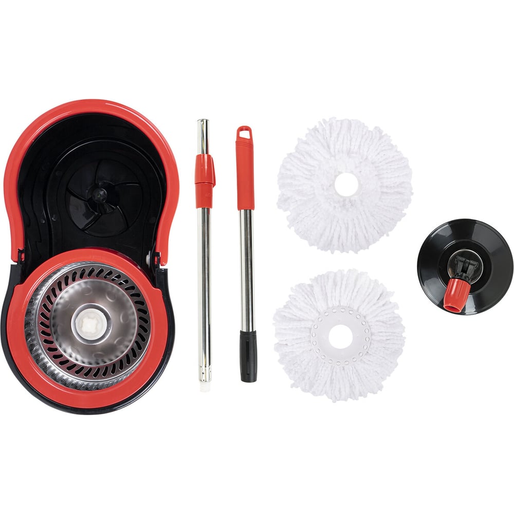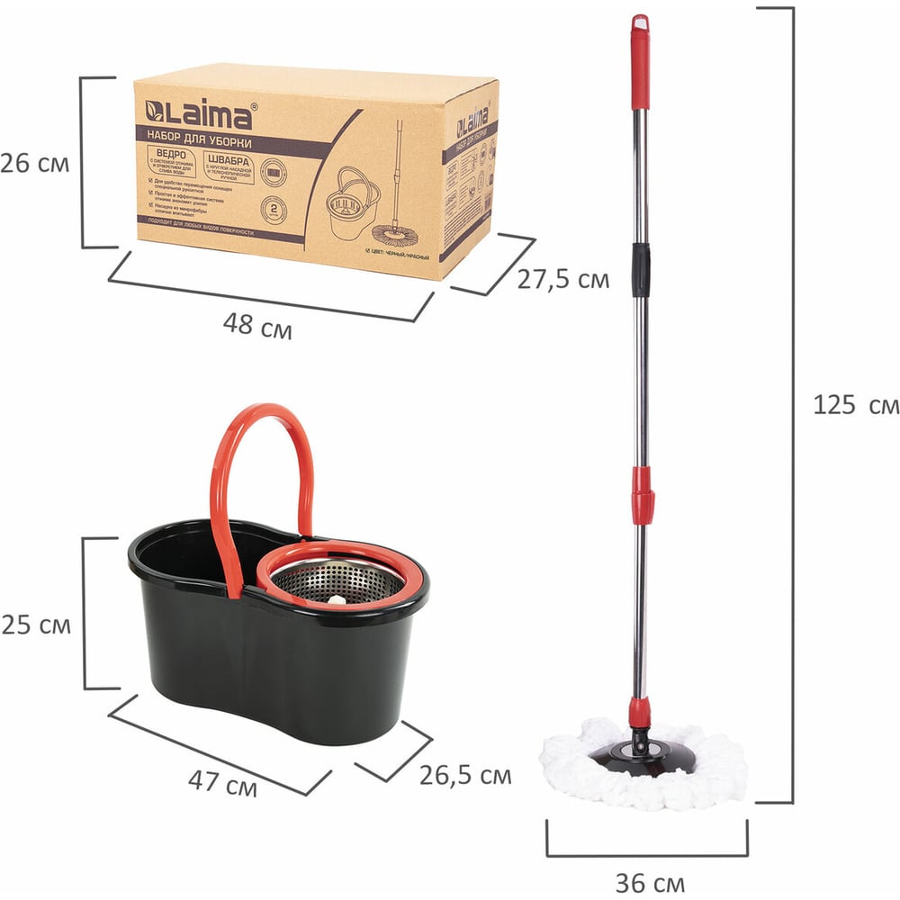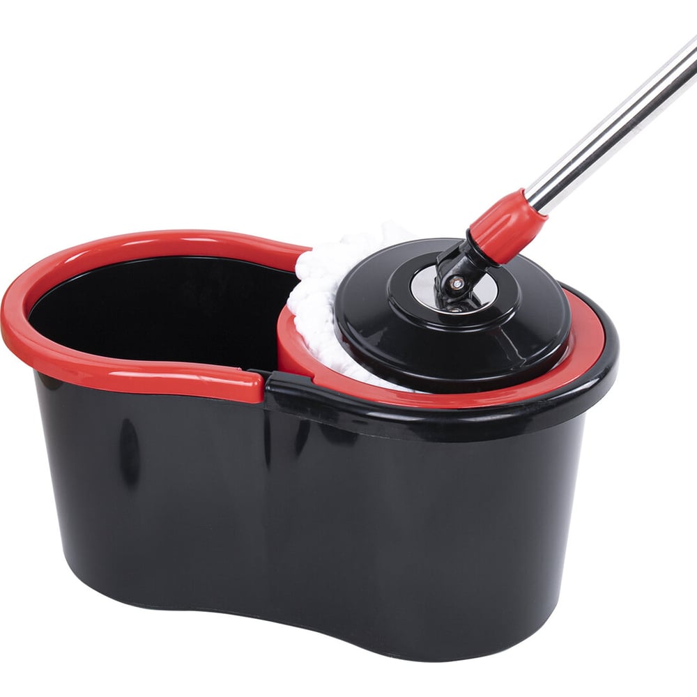 Швабра с отжимом и ведром LAIMA 7л/5л TONE MOP, две насадки в комплекте, черно-красный 607487