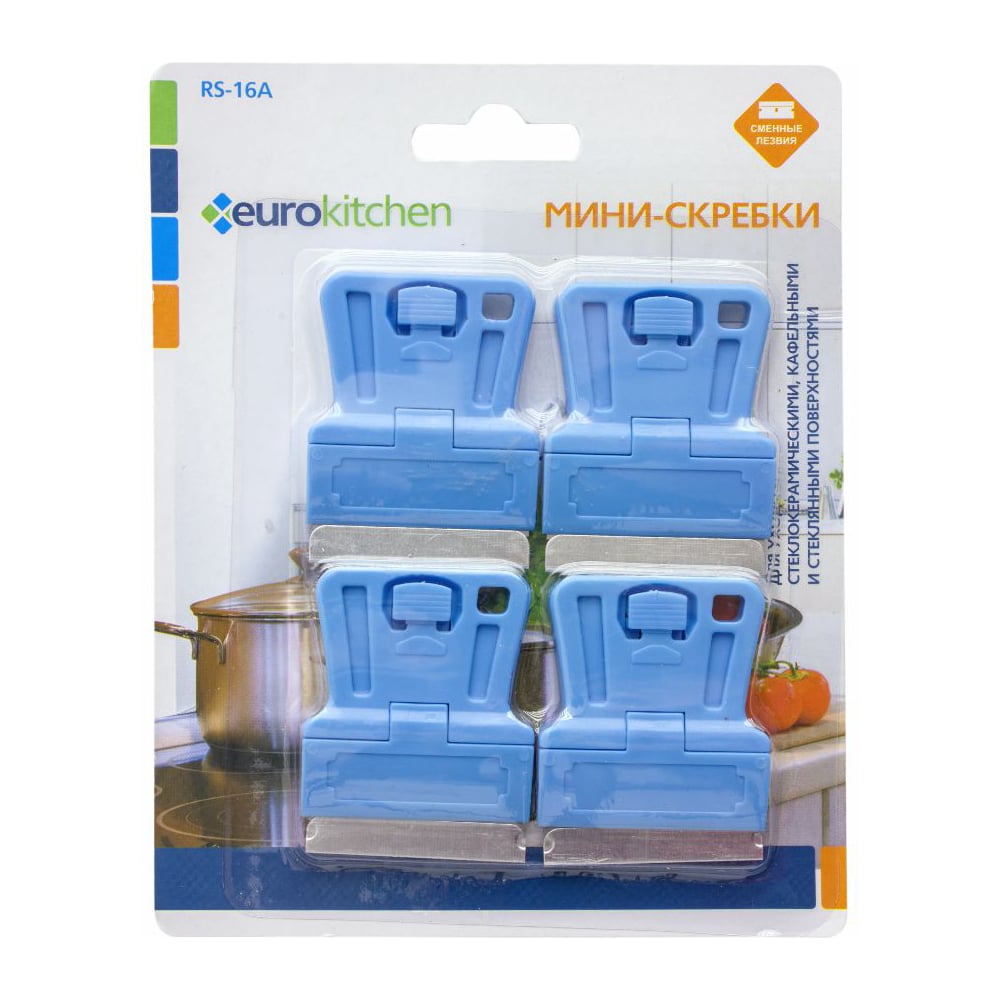 Набор скребков для чистки стеклокерамики Eurokitchen цвет голубой, 4 шт. RS-16A