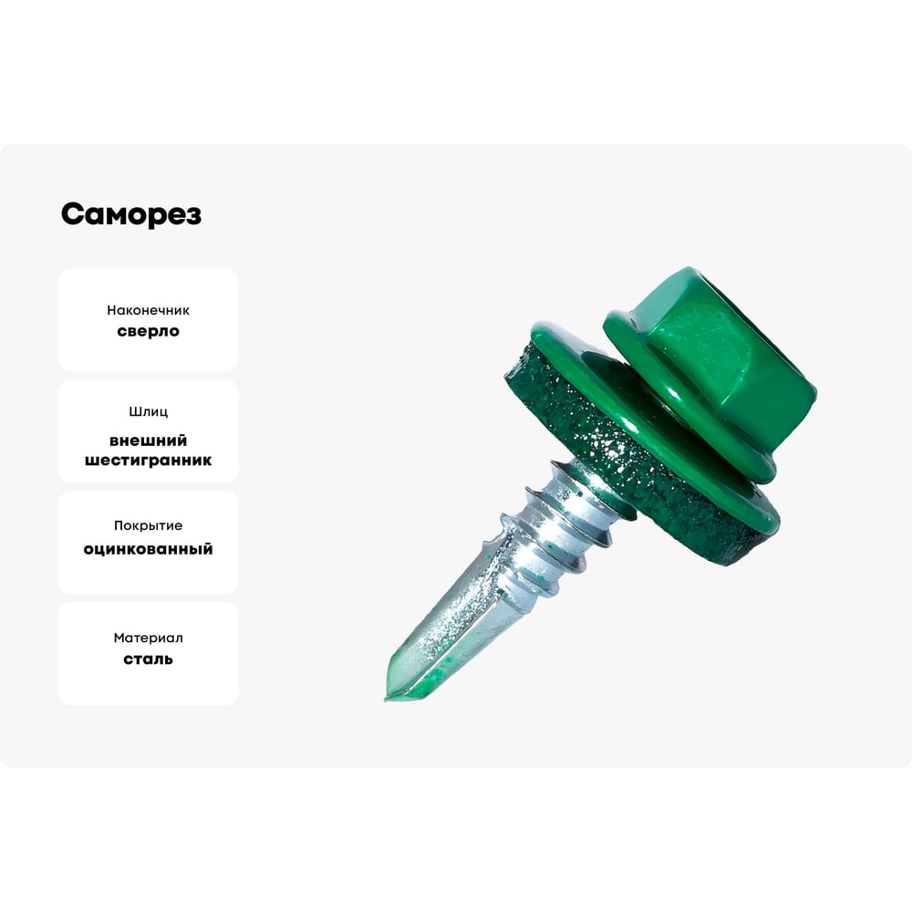 Саморез кровельный по металлу HARDWEX ТМ HWX7-W-P9-5.5x25 мм, св.№3, RAL 6002, 250 шт. 5190000023927