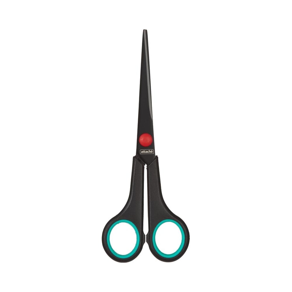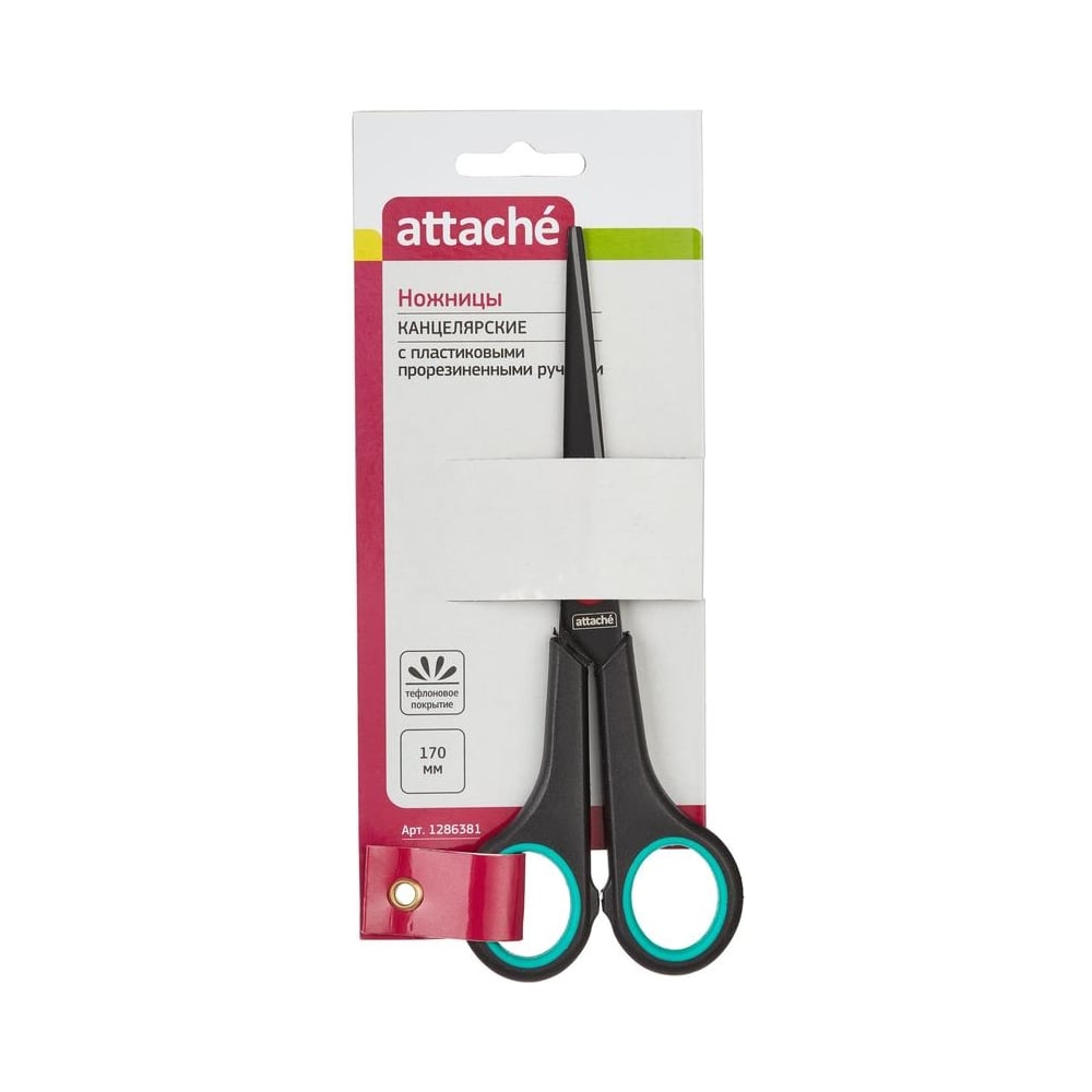 Ножницы Attache 170 мм с пластиковыми резиновыми ручками, с тефлоновым покрытием цвет черный/красный 1286381