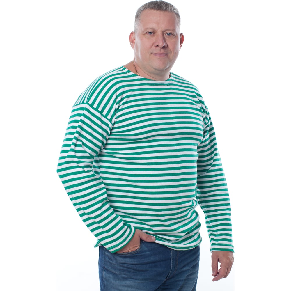 Плотная тельняшка с длинным рукавом БЕРТА 100% хлопок, зеленая полоса 700з-56-58