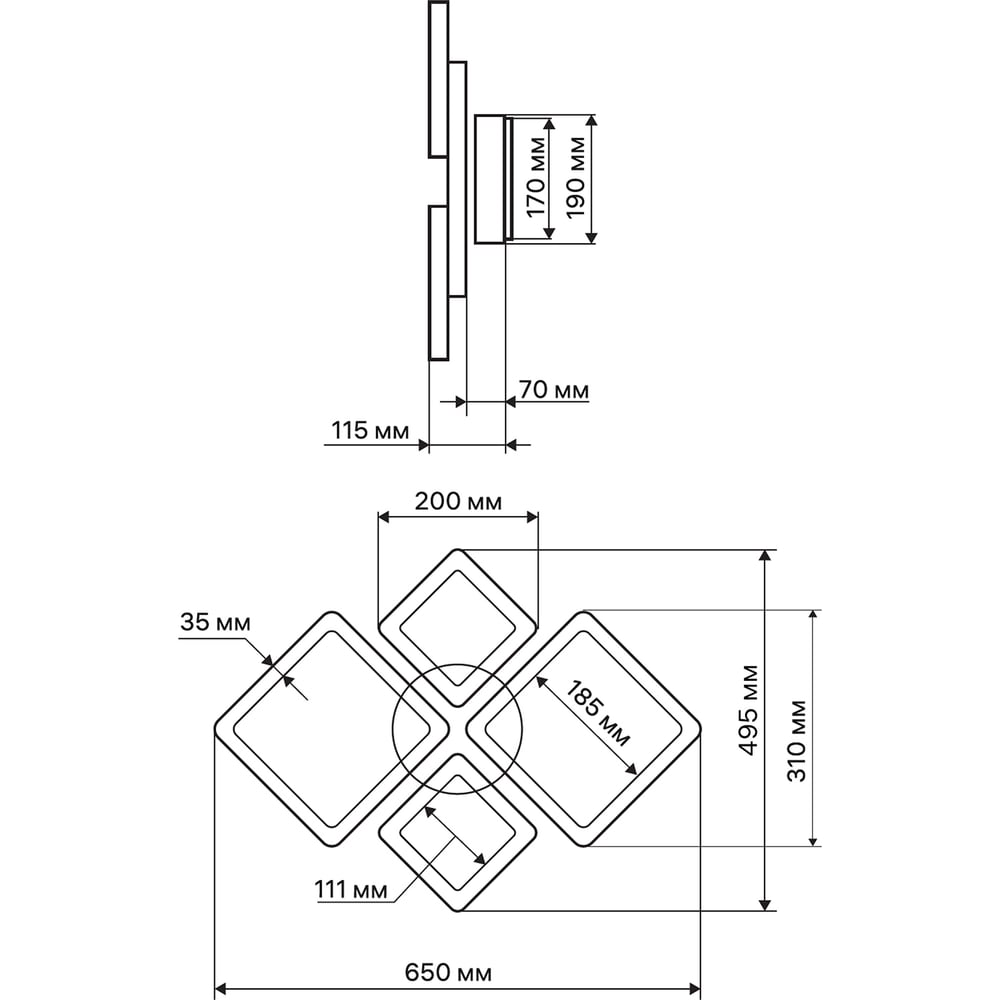 | Направление плафонов | в стороны |