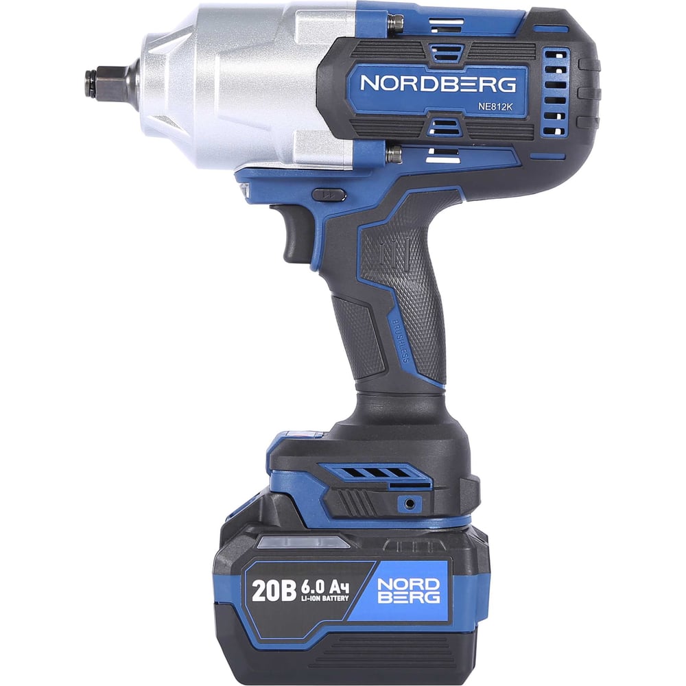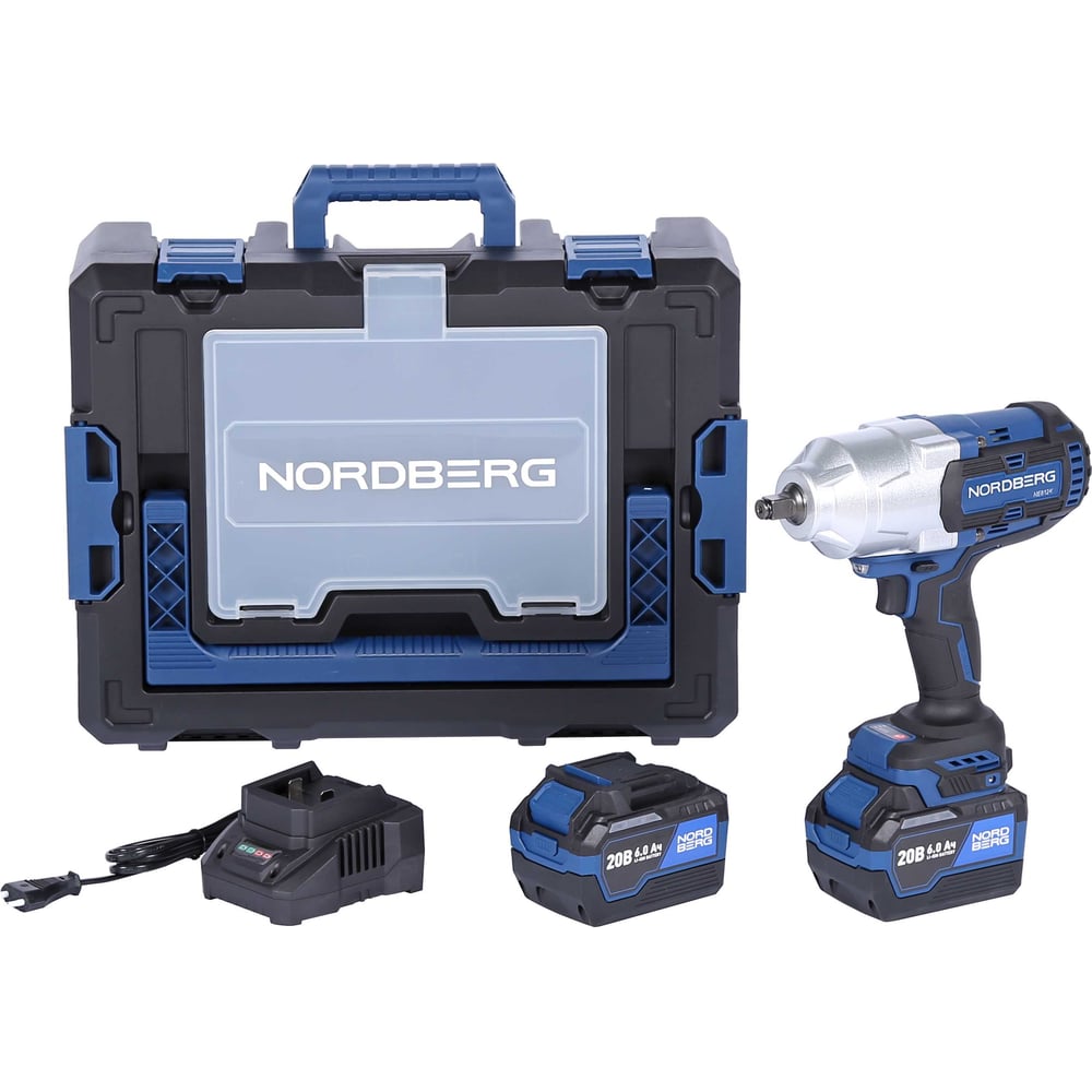 Гайковерт аккумуляторный NORDBERG, 1/2", 20 В, 1700 Нм, с двумя аккумуляторами 6 А·ч и зарядным устройством 1,8 А, в кейсе NE812K