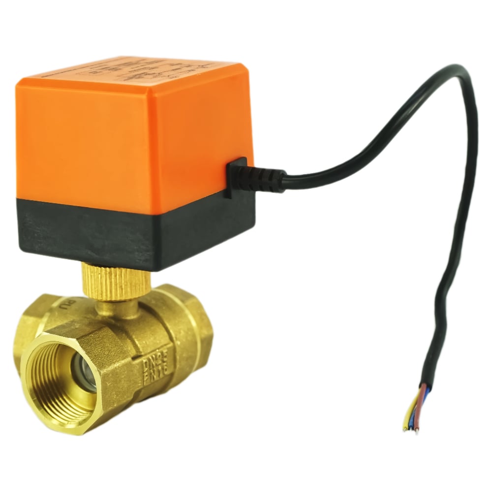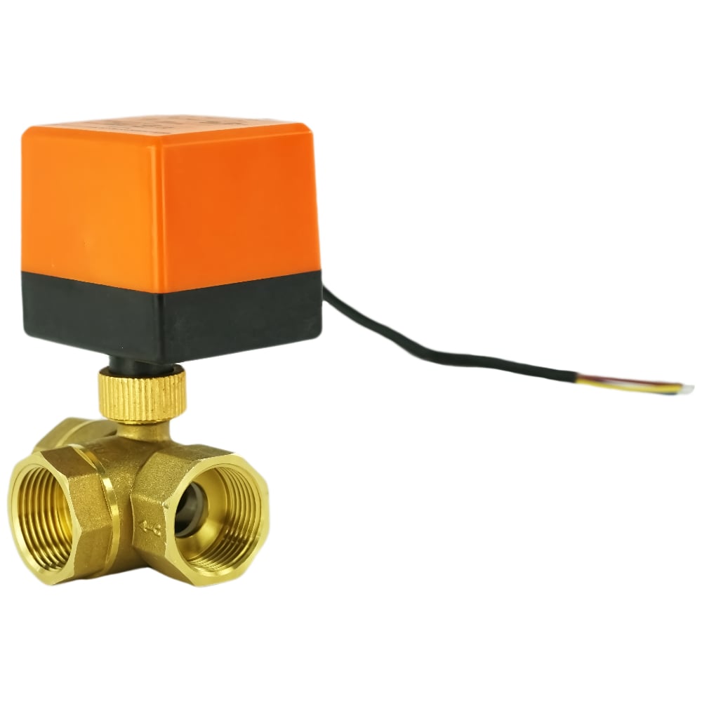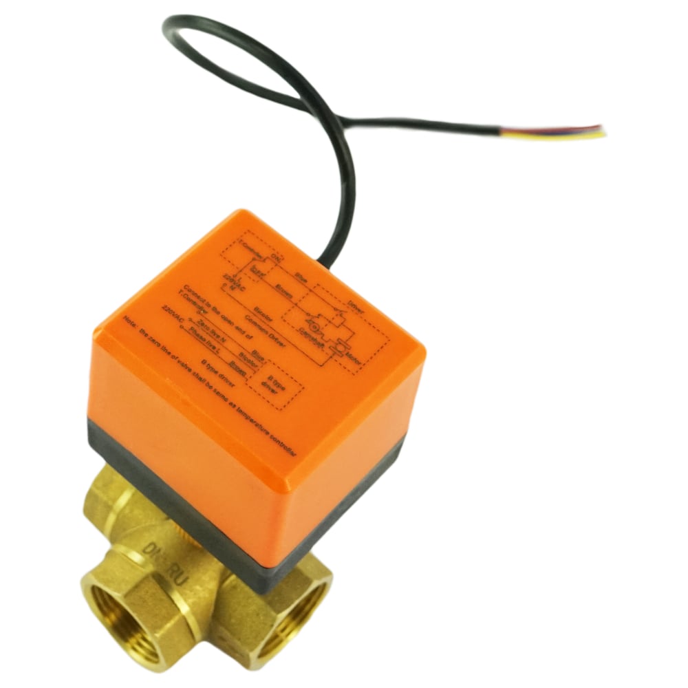 Кран DN.ru латунный 3-ходовой T-тип RP.BRASS.120.MM.025 Ду25 Ру16, электропривод 220В D160-00115
