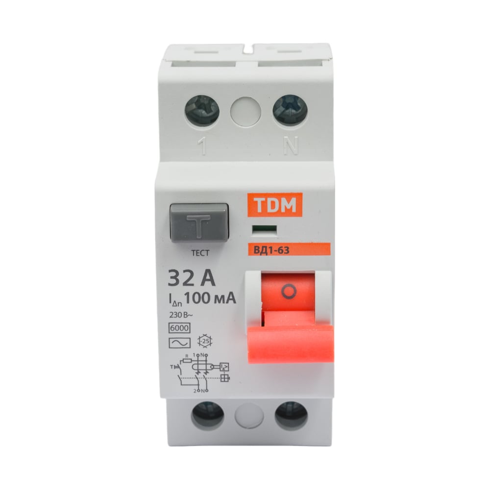 Узо TDM ВД1-63 2Р, 32 А, 100 мА SQ0203-0009