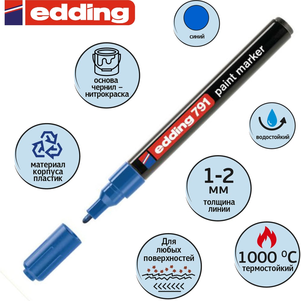 Лаковый маркер EDDING E-791/3 синий, 1-2 мм, пластиковый корпус 537626