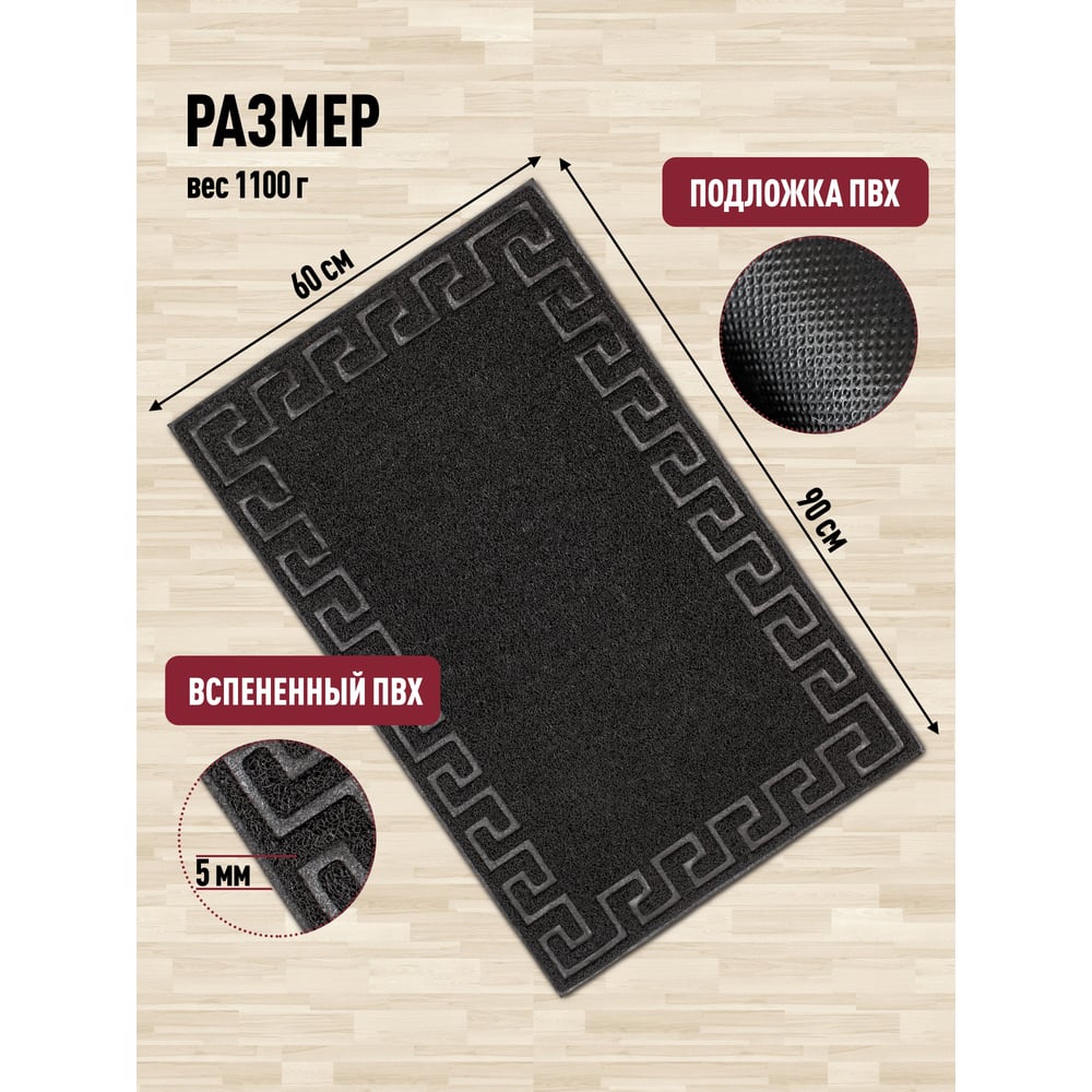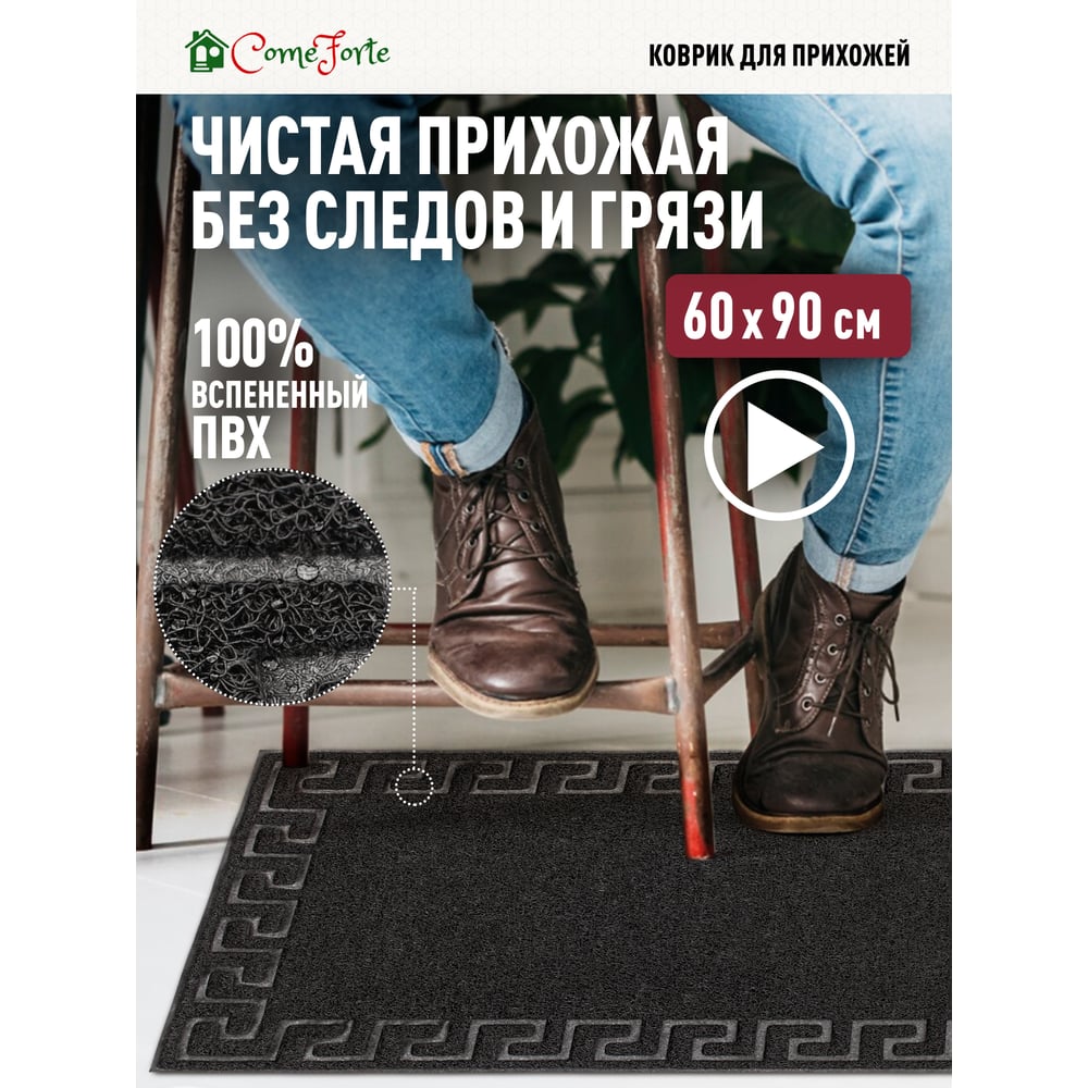 Придверный пористый коврик ComeForte Meander 60х90 см черный LM-13