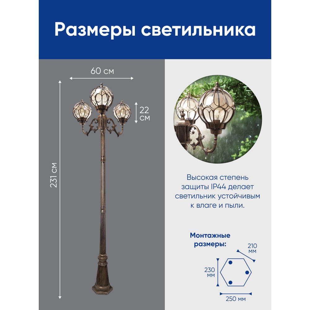 Садово-парковый светильник FERON PL3809 столб круглый 3х60W 230V E27, черное золото 11390