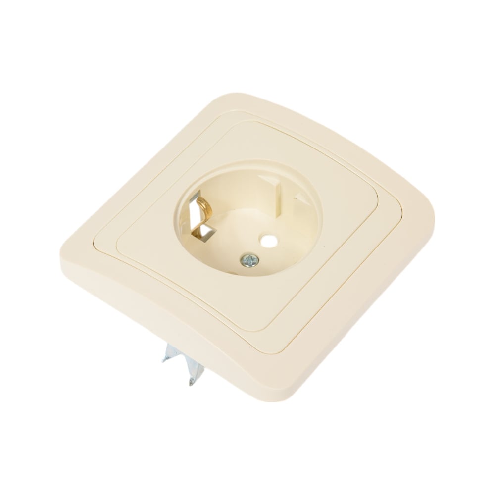 Розетка слоновая кость, с защитными шторками с заземлением 16А серия "Валдай" TDM ELECTRIC SQ1804-0124