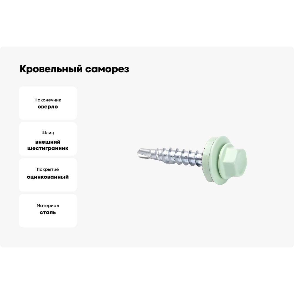 Кровельные саморезы ВИРТУОЗ 4,8х50 мм, RAL 6019, бело-зеленый, 10 шт. 2491
