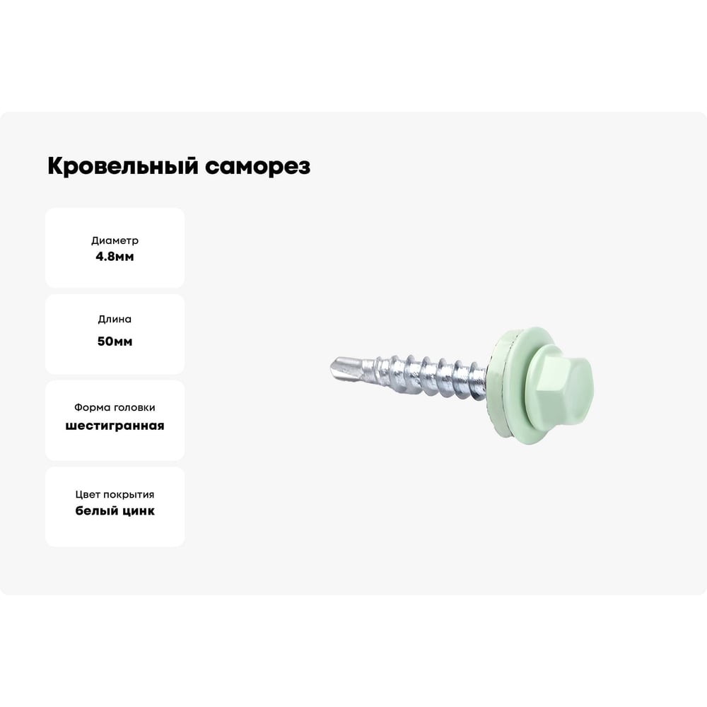 Кровельные саморезы ВИРТУОЗ 4,8х50 мм RAL6019 бело-зеленый 10 шт. 2491