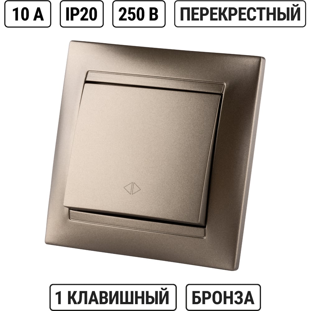 Перекрестный выключатель 1-клавишный 10А бронза серия "Лама" TDM ELECTRIC SQ1815-0736