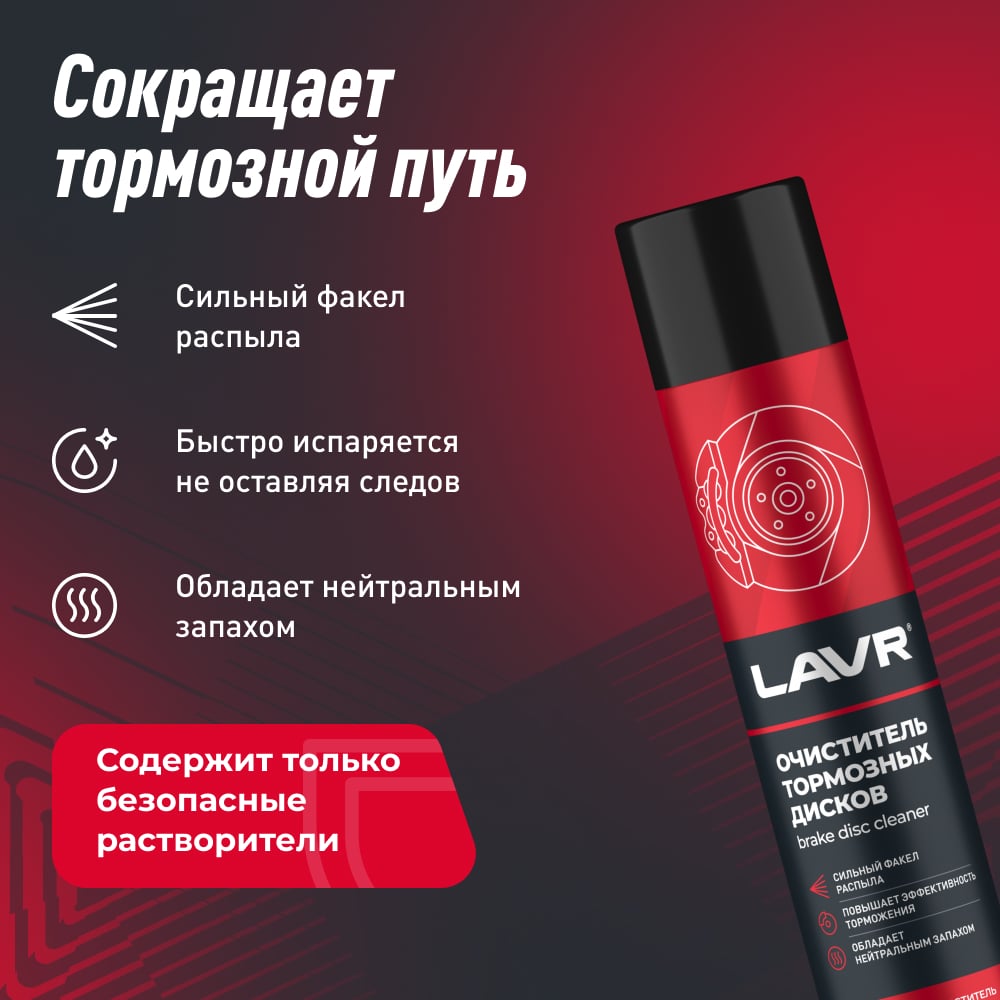 Очиститель LAVR тормозных дисков, 650 мл Ln1498