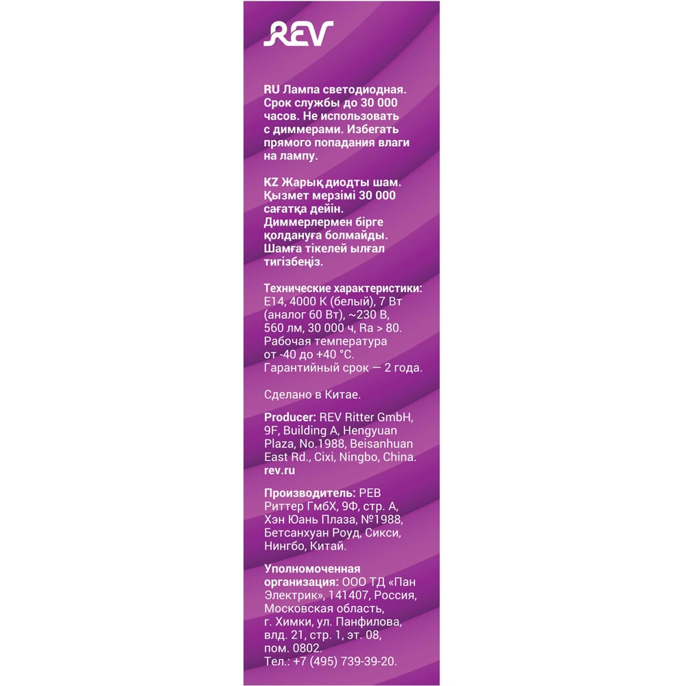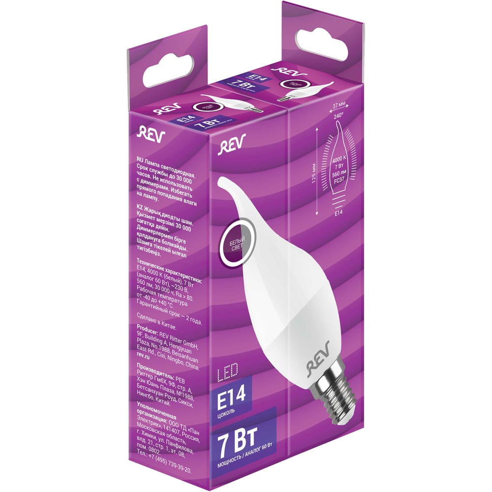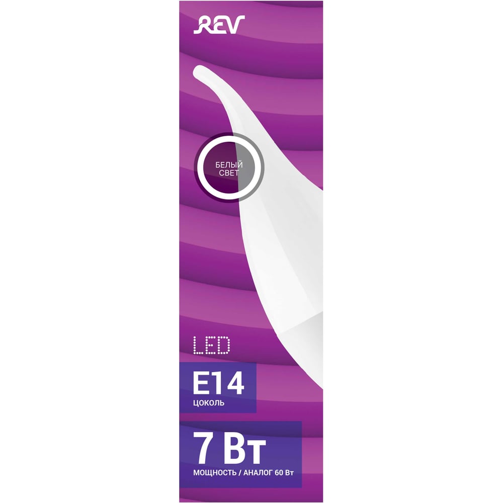 Светодиодная лампа REV, LED FC37 Е14 7W, 560Лм 4000K, холодный свет 32352 5
