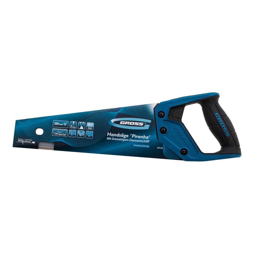 Ножовка по дереву GROSS PIRANHA, 300 мм, 7 TPI, 3D-зуб, тефл. покрытие, 2-х комп. рукоятка 24124