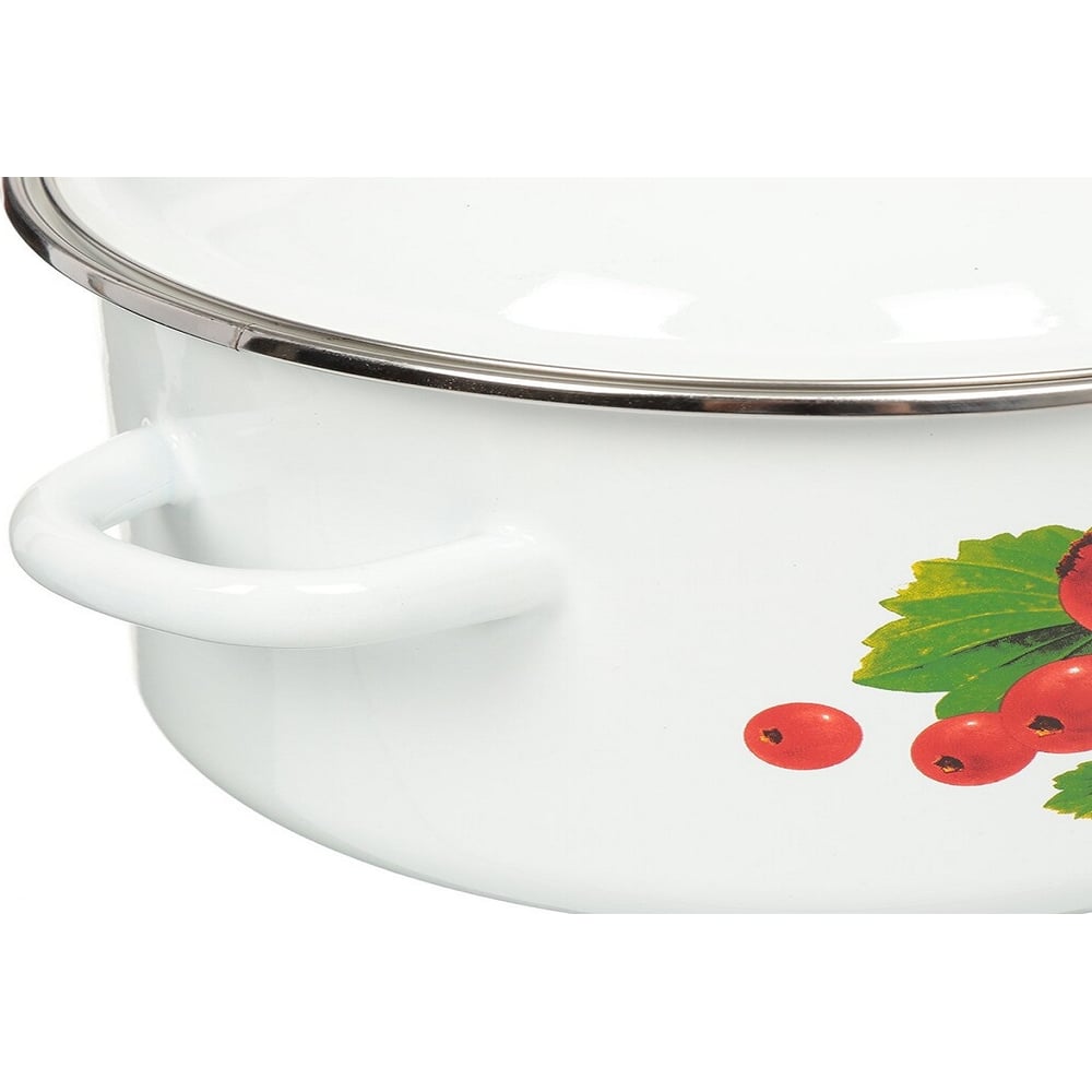 Эмалированная кастрюля Сибирские товары Калина красная цилиндрическая, 2.0 л, с ободком, белая ПД2068