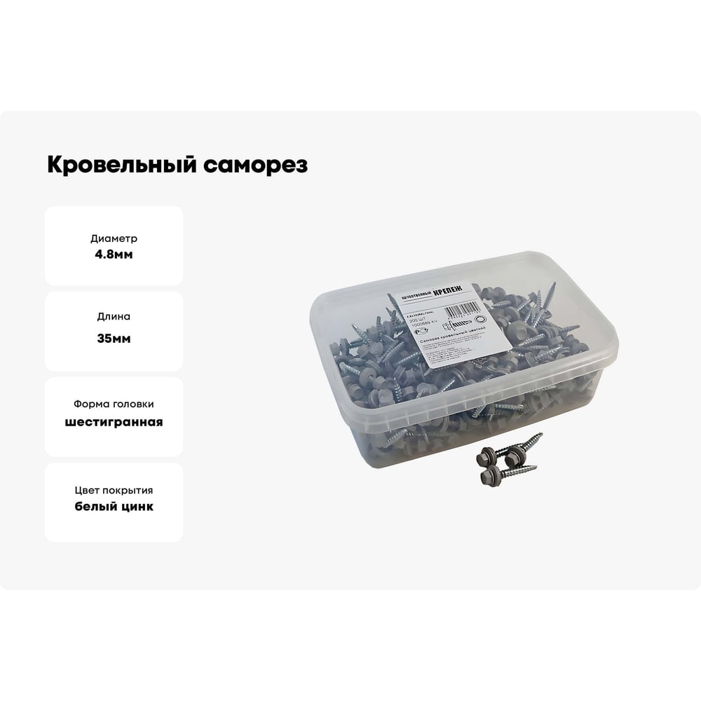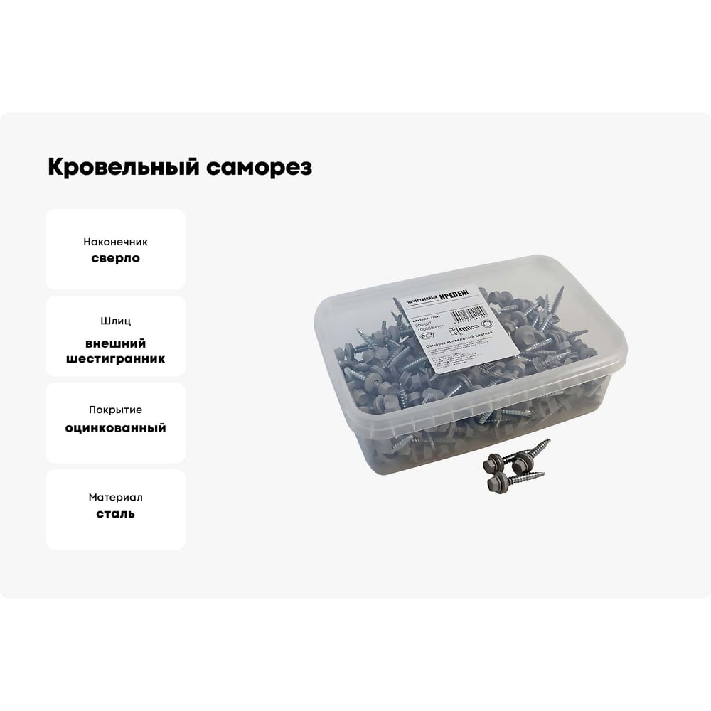 Кровельный саморез Качественный КРЕПЕЖ серый RAL 7004, 4.8х35 мм, 200 шт 1000689 КЧ