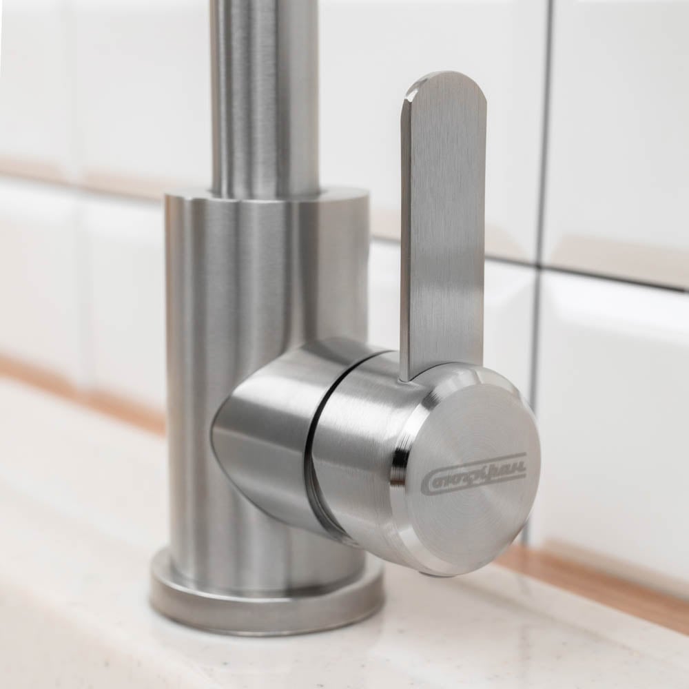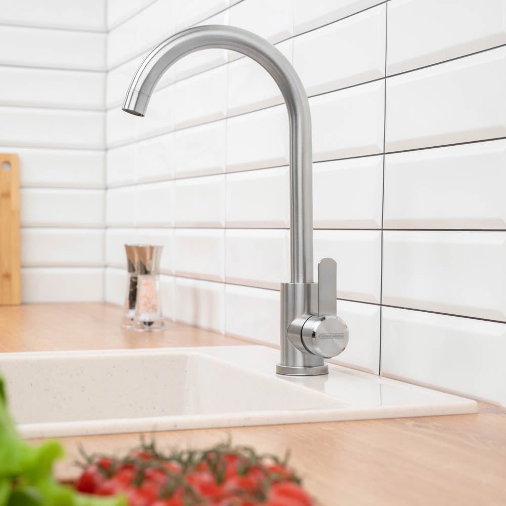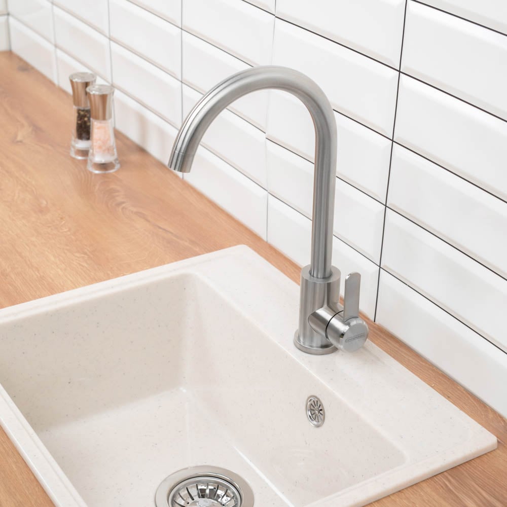 Смеситель для кухни СоюзКран поворотный излив 35 см., керамический картридж 35 мм., нержавеющая сталь SS01-R133 567-092