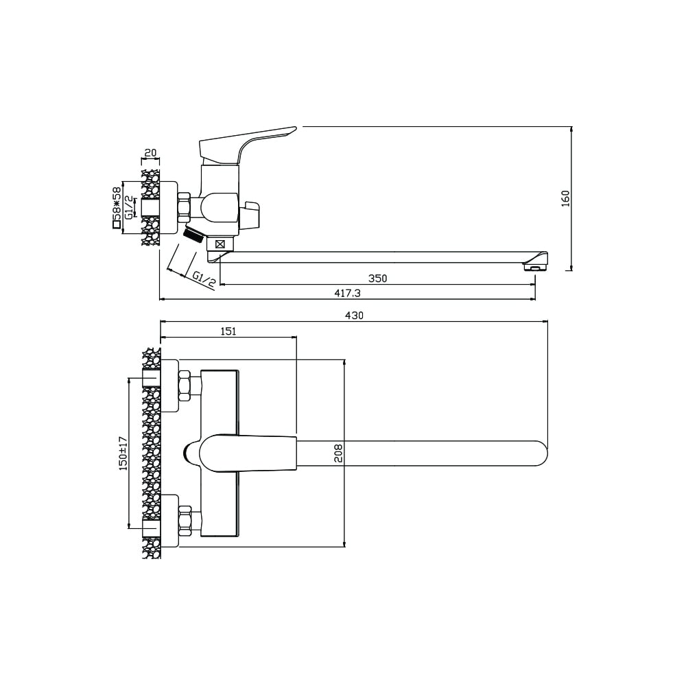 Универсальный смеситель для ванны OLIVE'S PORTO 11221PR с длинным изливом