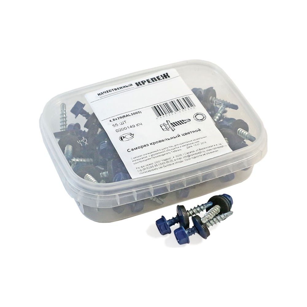 Кровельный саморез Качественный КРЕПЕЖ синий RAL 5005, 4.8х29 мм, 55 шт 0200149 КЧ