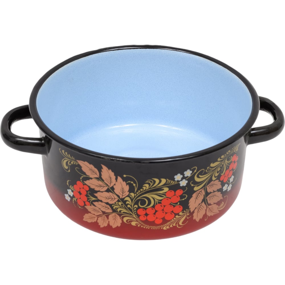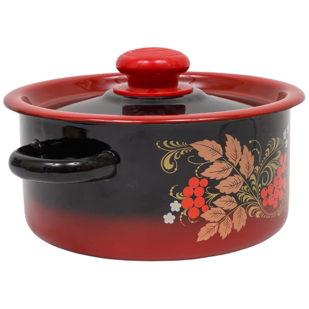 Эмалированная кастрюля Сибирские товары цилиндрическая, 2.0 л, декор, красно-черная, с пластиковой кнопкой ПД2723