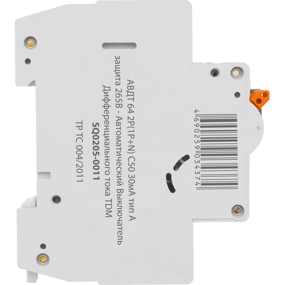 Автоматический выключатель дифференциального тока АВДТ (дифавтомат) 64 TDM ELECTRIC 2Р(1Р+N) C50 30мА тип А защита 265В SQ0205-0011