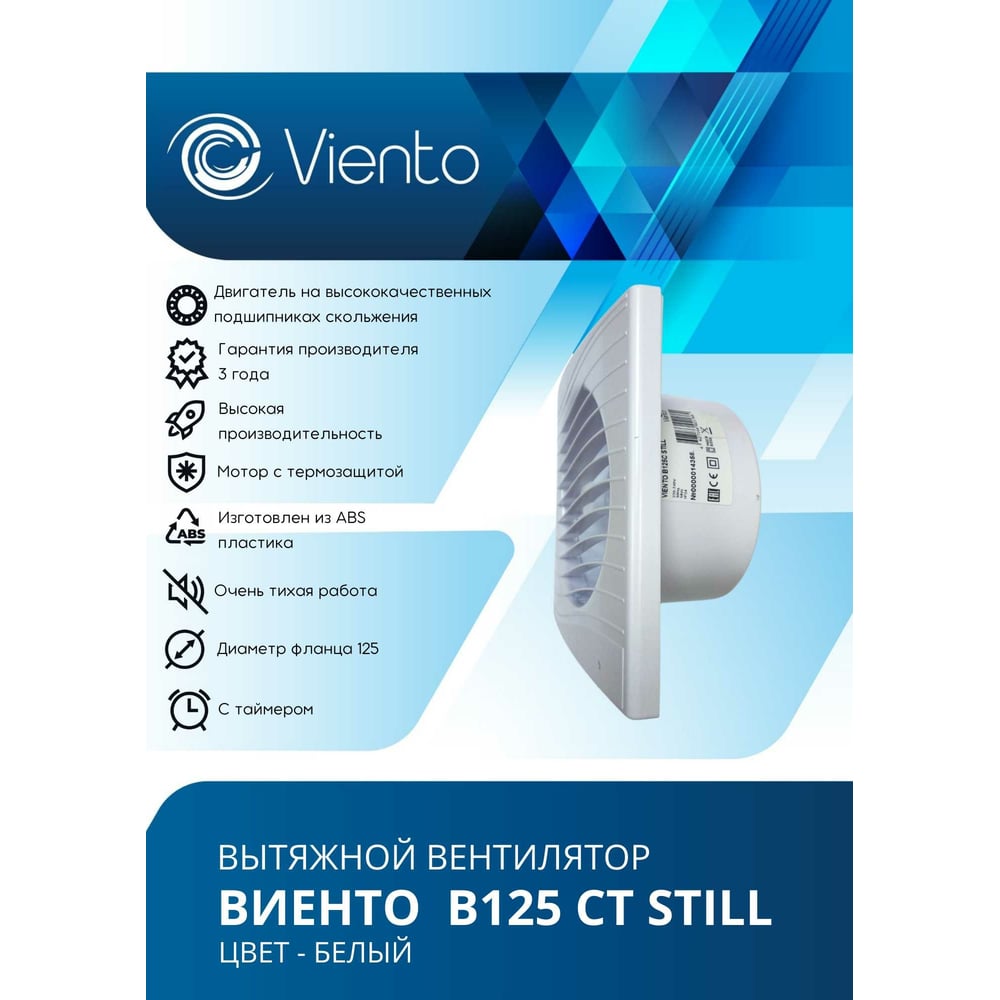 Осевой малошумный вытяжной вентилятор с таймером ВИЕНТО В125СТ STILL