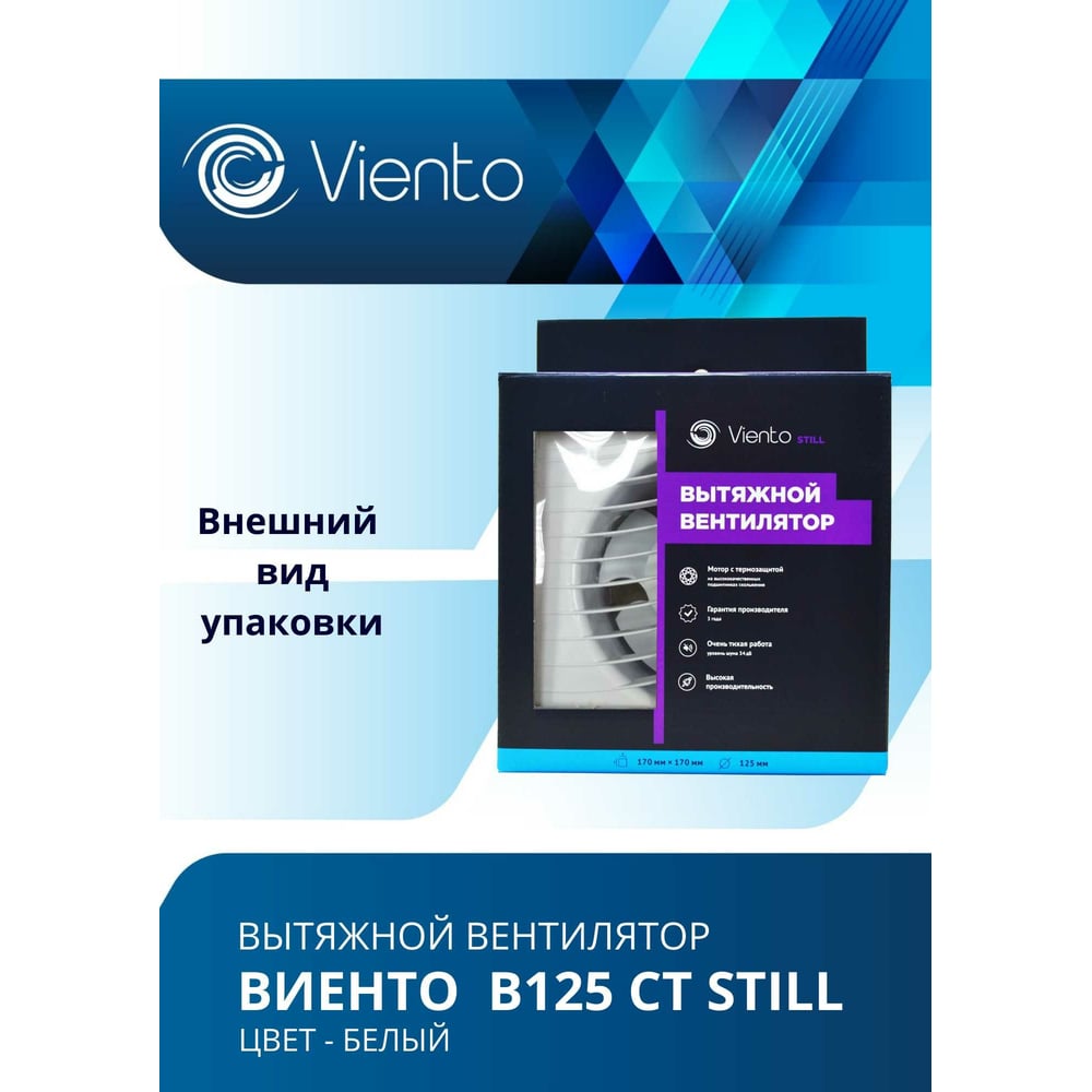 Малошумный осевой вытяжной вентилятор ВИЕНТО В125СТ STILL В125СТ STILL